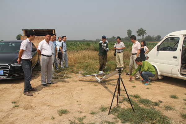 到達武功項目,正值艷陽高照,大隊領導為項目職工發(fā)放了西瓜、啤酒、飲料等防暑降溫品,對全體職工表示了慰問。隨后,大家來到工作現場,目睹了航測飛機的發(fā)射及飛行全過程。飛機在工作人員的遙控下彈射升空,盤旋兩周后消失在視線,放在面包車內的一臺電腦記錄著它的飛行軌跡,20多分鐘后,大家終于聽到了飛機的轟鳴聲,緊接著,飛機重新回到了大家的視線,誰也顧不上擦去頭上被火熱的太陽炙烤得不斷冒出的汗水,只仰頭循著飛機的飛行方向,看著飛機盤旋、降落、熄火、穩(wěn)穩(wěn)地著陸?;氐巾椖坎繒h室,大家迫不及待地圍坐在電腦前,隨著技術人員的操作,一張張清晰的立體照片呈現在大家眼前,飛行圓滿成功!
