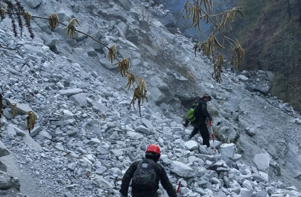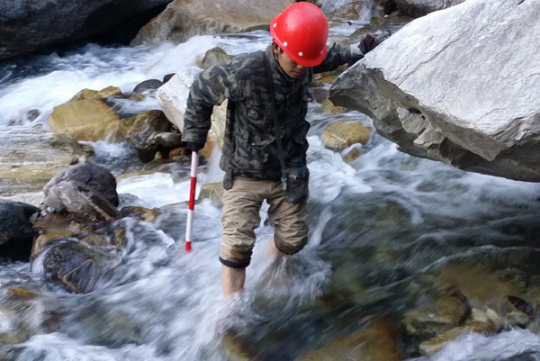 考慮到施工情況的特殊性,測繪院抽調(diào)了最年輕的骨干力量,項目組平均年齡不到25歲,大部分是90后。從生活優(yōu)越的平原地區(qū)來到條件艱苦的西藏高原,項目組11人埋頭苦干,沒人叫苦喊累。工作區(qū)懸崖峭壁林立,干活時要用安全繩把人吊下去才能測量,被吊下去的人既要拿著儀器操作,還要防止周圍滾落的石頭,大家都是捏著一把汗;過河就更危險了,臨時用木頭搭建的木橋很容易滾動,一不小心就會掉進湍急的河水;由于項目路線長,中間部分沒有村落,大家只有背著帳篷干活,沒有吃飯的地方,就用水壺燒點開水泡幾包方便面,或者啃個壓縮餅干把肚子哄飽。為了加快工作進度、保證數(shù)據(jù)的準確性,控制點靜態(tài)聯(lián)測的時候,項目組將筆記本電腦背上隨時檢驗數(shù)據(jù)的準確性、完整性。在高差近1000米的路途,人累得甚至于不想戴手套以減輕負重,但他們還是毅然扛上“沉重”的筆記本電腦,以嚴謹?shù)墓ぷ鲬B(tài)度為項目質(zhì)量提供了保障。