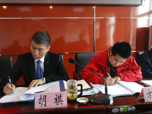 胡總代表公司同各部門(中心)簽訂了《2015年經(jīng)營(yíng)指標(biāo)責(zé)任書》、《安全生產(chǎn)責(zé)任書》。