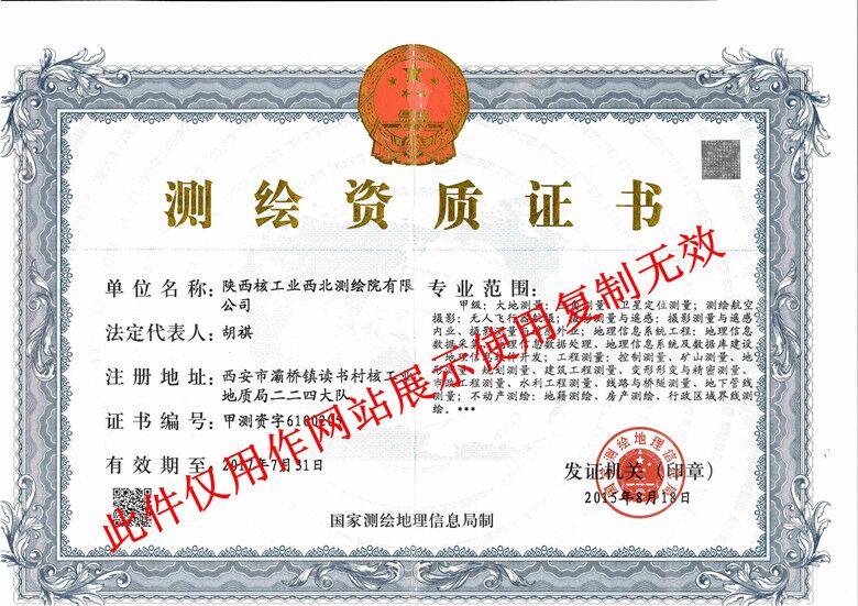 在公司領(lǐng)導(dǎo)的大力支持下,在陜核西北測(cè)繪院全體職工的共同努力下,測(cè)繪院資質(zhì)由乙級(jí)成功升為甲級(jí)。