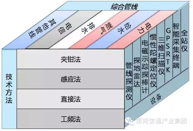 管線普查及數(shù)據(jù)處理工程方面,根據(jù)行業(yè)內(nèi)綜合管網(wǎng)數(shù)據(jù)采集的行業(yè)經(jīng)驗(yàn),并結(jié)合現(xiàn)場(chǎng)作業(yè)最佳實(shí)踐,建立了針對(duì)綜合管網(wǎng)的專業(yè)分類、探測(cè)方法、技術(shù)應(yīng)用三個(gè)維度的立體化作業(yè)模型,以信息化手段為抓手形成可持續(xù)發(fā)展的精益化綜合管線數(shù)據(jù)管理方法論,構(gòu)筑了綜合管線通用性采集的發(fā)展思路。