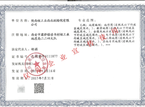 12月16日,陜核西北測(cè)繪院順利通過了陜西省測(cè)繪地理信息局行業(yè)管理處審核,取得了地圖編制乙級(jí)資質(zhì)。此項(xiàng)資質(zhì)的業(yè)務(wù)范圍包括省級(jí)及以下行政區(qū)域范圍內(nèi)地形圖、教學(xué)地圖、全國及地方政區(qū)地圖、電子地圖、真三維地圖以及其它專業(yè)地圖的編制。