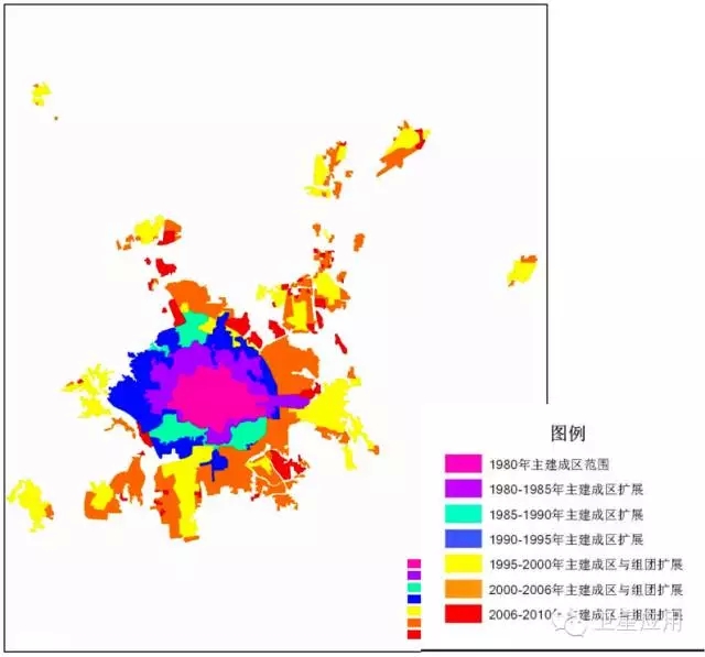 圖1 北京市建成區(qū)的發(fā)展示意圖