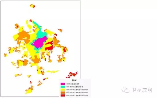 北京1978-2010年建成區(qū)面積由161km²增至1734km²,城市擴(kuò)展了近11倍。北京建成區(qū)如圖1所示。