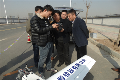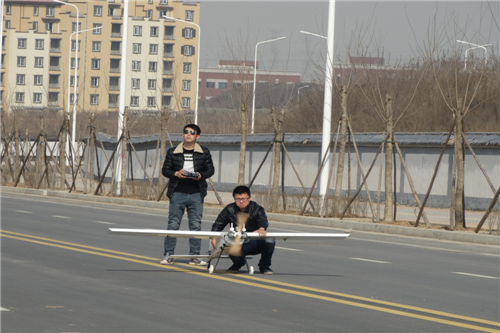 在飛行現(xiàn)場,操控手對“陜核鷹”的性能及相關(guān)參數(shù)進行了詳細介紹:“陜核鷹”全長2.05米,翼展長度2.6米,最大平飛速度110km/h,飛行海拔可達4000米,拍攝照片地面分辨率達20厘米,飛行性能良好。在一切準備就緒后,“陜核鷹”帶著所有人的期盼,以驚人的速度起飛并沖向天空;在500米高空,“陜核鷹”始終嚴格按照操控手設(shè)定的航行路線翱翔;兩個時段后,“陜核鷹”安全平穩(wěn)著陸。操控手將機身中的照相機取出,在場人員清晰地看到了照片中地面標識線等地物。最后,鄭副總向在場人員宣布:“陜核鷹”首次試飛成功!