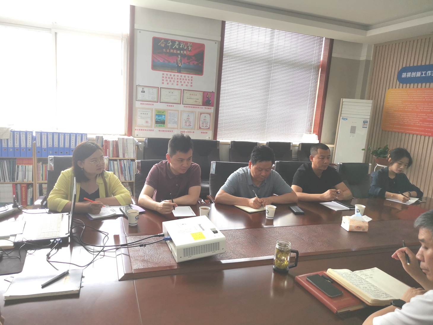 首屆“陜西省國(guó)防科技工業(yè)勞動(dòng)模范”、陜西省測(cè)繪地理信息局專家?guī)鞂<液飨蛸噾c林一行人員介紹了工作室的整體概況,從創(chuàng)新理念、組織架構(gòu)、成果展示、人才培養(yǎng)等方面都做出了細(xì)致的講解,使大家對(duì)創(chuàng)新工作室有了一個(gè)初步的認(rèn)識(shí)。一行人員每到一處都仔細(xì)觀看,相互交流、汲取經(jīng)驗(yàn)。